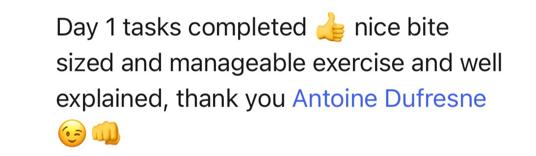 You won't get stuck implementing what you're learning. As questions come up, just ask Caryn & Antoine in the comments section where they'll provide answers during the 5-day challenge (11-15 May).
